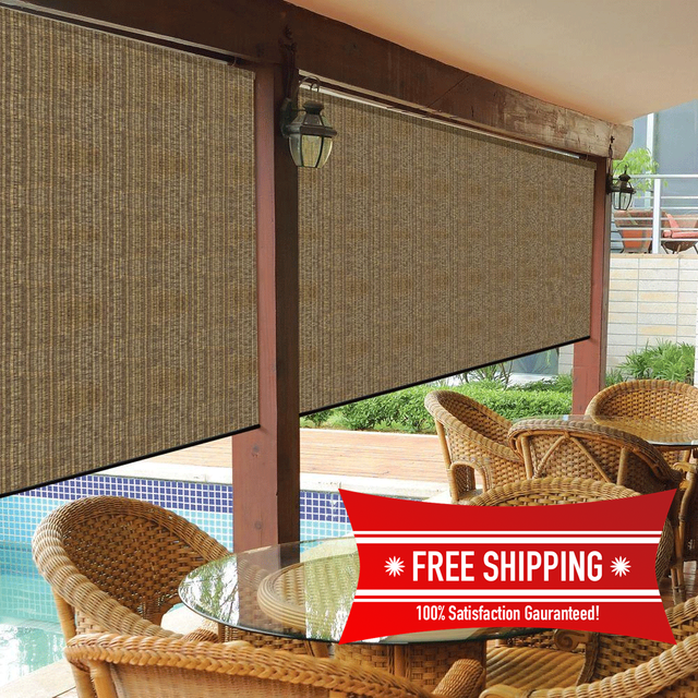 Whether youre looking to create an outdoor room or create privacy and protection from the sun wind and rain our custom made outdoor roller blinds offer a stylish and practical solution. With a perfect custom fit premium materials and rust resistant hardware our outdoor blinds and shades are a great choice for your exterior windows decks porches patios and more. Tang sunshades depot exterior roller shade roll up shade for patio deck porch pergola balcony backyard patio or other outdoor spaces blinds light filtering block 90 uv rays 7 w x 6 l brown.